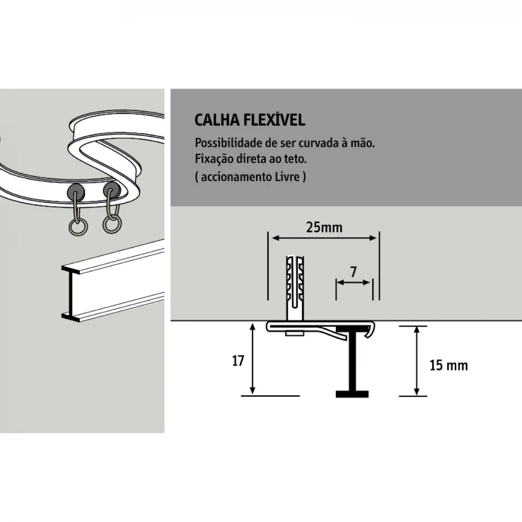 Canaleta pequeña y de diseño minimalista. Ideal para cortinas ligeras.