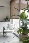 Tela texturizada de poliéster, microperforada con factor de apertura de 4%, con colores calientes y decorativa, que sugieren una apariencia rústica. Excelente resistencia a la luz.