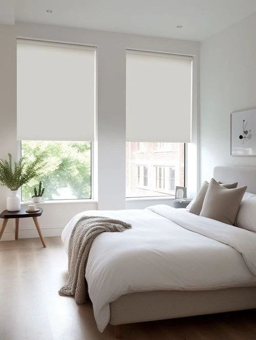 Estore de rolo sem furação com tela translúcida unicolor de poliéster, com boa entrada de luminosidade. É mais adequada para espaços que necessitam de privacidade e luz, uma vez que impede a visibilidade para o interior. Excelente grau de solidez à luz.